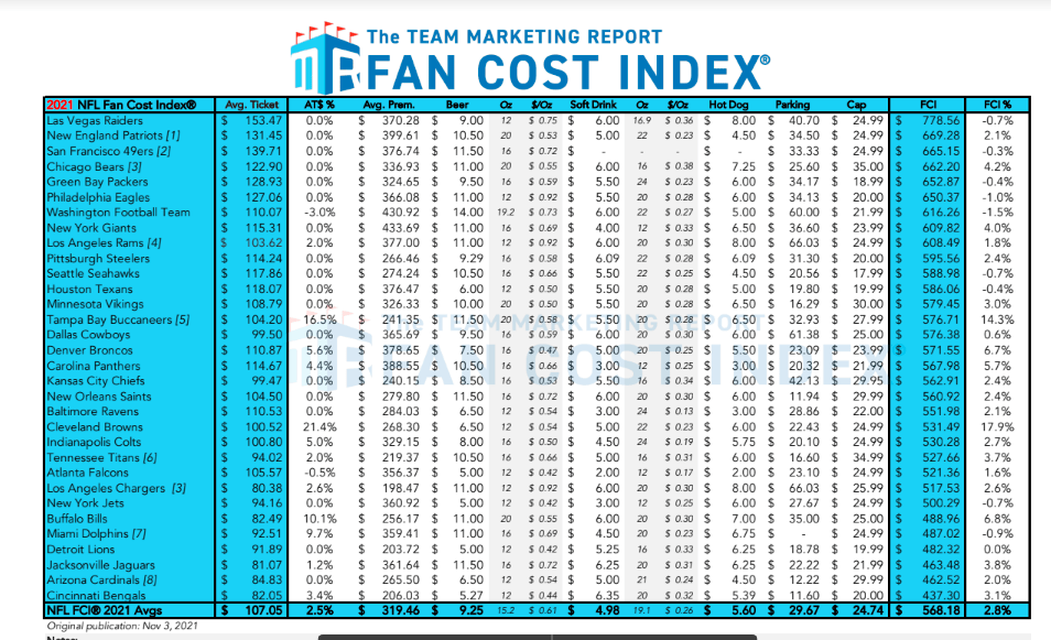 Raiders Have Most Expensive Average Ticket Price Family Of Four Costs In Nfl For 2021 Lvsportsbiz